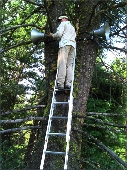 Researchers from Boise State University in Idaho created a “phantom road” at a site in the Boise Foothills that is a stopover for migratory birds in the fall. They put up 15 speakers in Douglas fir trees and played recorded sounds of a road at intervals of four days — four days on, four days off. They then counted birds at three locations along their phantom road and three locations nearby where the road noises couldn’t be heard.