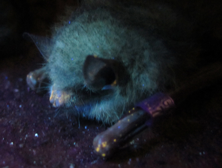 The UV light method won’t replace other tests for WNS syndrome, the researchers admit. It probably won’t detect a bat with a mild case of the disease, and an inexperienced observer (or one without great vision) may miss infected bats. But, they write, “the ability to perform targeted and nonlethal sampling of bats for WNS offers a needed tool to facilitate enhanced surveillance and research for the disease.” And that can only be a positive thing in the efforts to stem the spread of the deadly WNS.