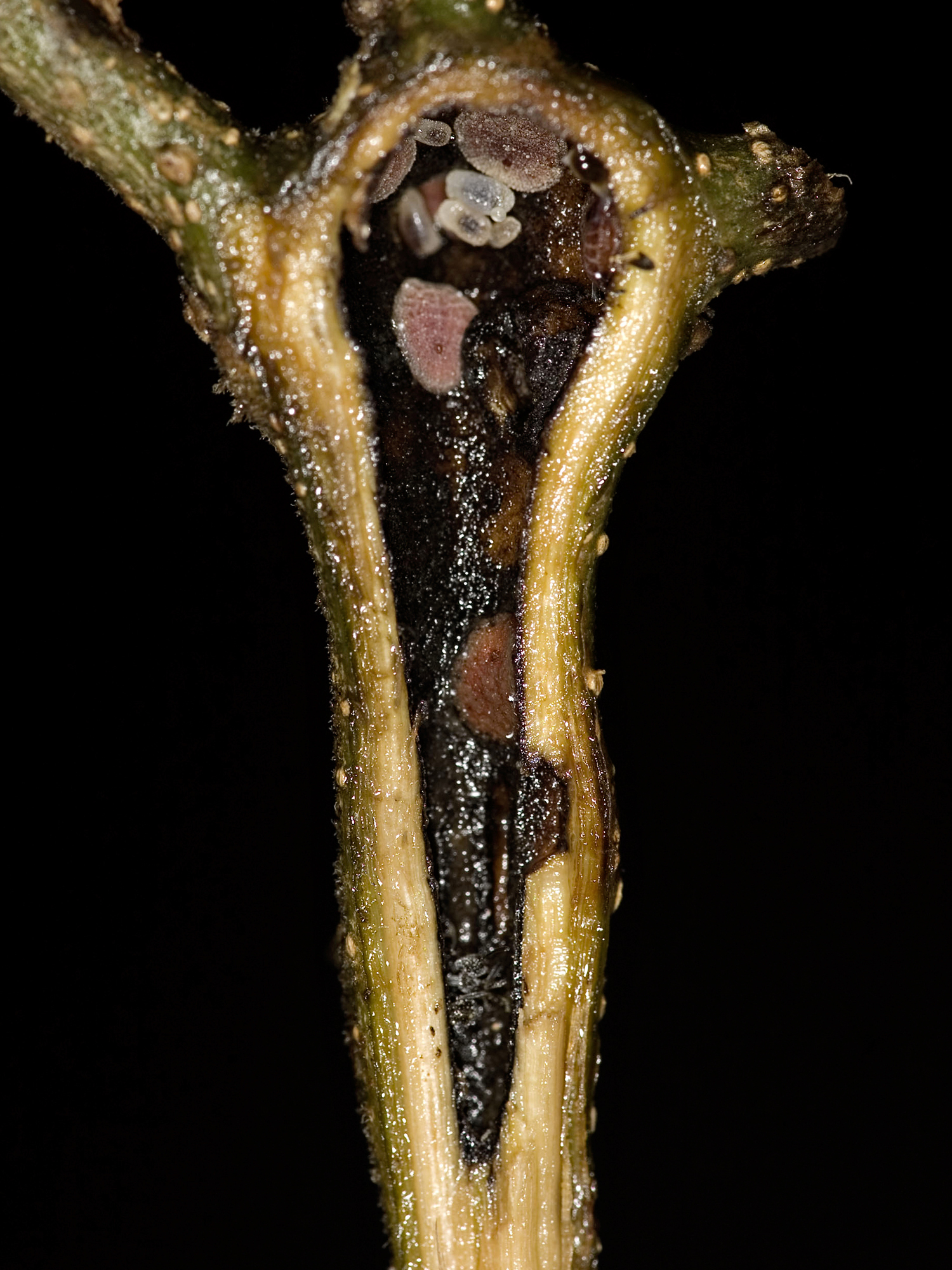 Ecuador laurel trees (Cordia alliodora) are populated with populations of tiny Azteca pittieri ants. The ants nest in stem cavities that are also home to pink scale insects. Those scale insects feed on sap from the laurel tree and produce a sugary substance called honeydew that the ants eat. The ants may be small, but they provide adequate defense for the tree by ganging up on leaf-eating caterpillars and biting their undersides until the herbivores fall off the tree.