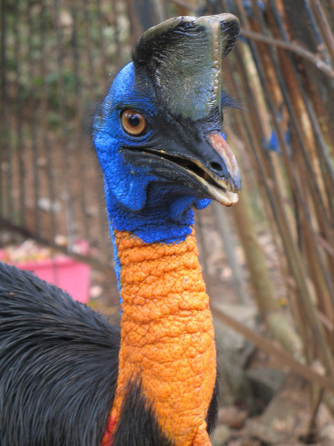Native to: Tropical rainforests of Papua New Guinea, Indonesia and northeastern Australia Height: 1.5-1.8 meters Weight: 17-70 kilograms Life span: About 30 years in the wild, 18-50 years in captivity Eats: Mostly fruit that has fallen onto the ground, also fungi, snails, small dead mammals Can I eat it? No. The IUCN classifies them as Vulnerable, and they are listed as Endangered in Australia. You should know: The males are smaller, incubate the birds’ large green eggs and rear the chicks. What should I do if I encounter one? Leave it alone. If you’re lucky, the bird will just ruffle its feathers and hiss at you. If not, it will attack. And that could be very bad. Its innermost claw is elongated and very sharp. The last known case of death by southern cassowary was back in 1926, but there have been plenty of instances of broken bones and gashed bodies.