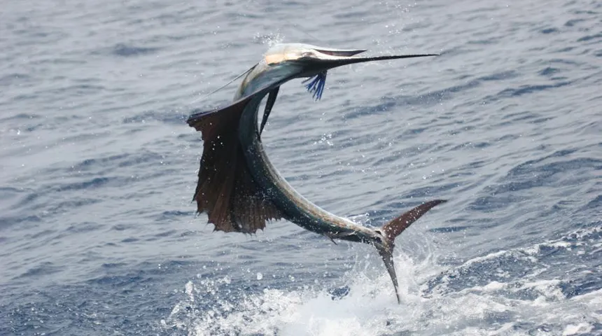 Sailfish are named for the sail-like fin on their backs, but they can also be characterized by their elongated bills.