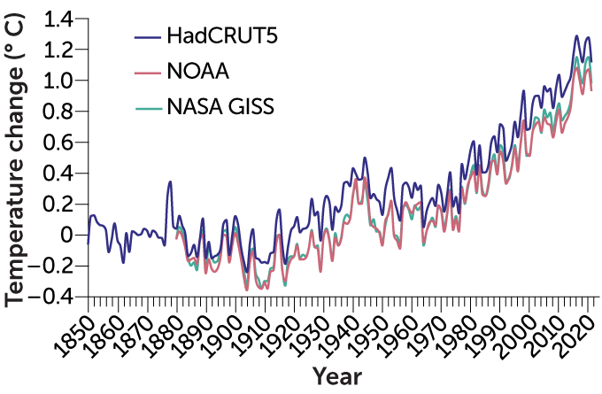 Temperature observations taken at weather stations around the world also confirm that we are living in the hottest years on record. The 10 warmest years since record keeping began in 1880 have all occurred since 2005. And nine of those 10 have come since 2010.