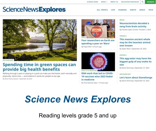 Welcome to the Science News Learning educator portal for Science News Media Group. Use this site to access award-winning journalism from Science News (reading level grades 9 and up) and Science News Explores (reading level grades 5 and up) and discover how they can inspire your curricula. Every other week, you’ll find new NGSS-aligned lesson plans published on our site. They will help you integrate one of the latest articles from Science News and/or Science News Explores in your classroom.
