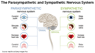 The sympathetic nervous system — our fight-or-flight response — kicks in when we face a big challenge or risk. When we’re relaxed, our parasympathetic nervous system takes over. Together these two systems make up the autonomic nervous system.