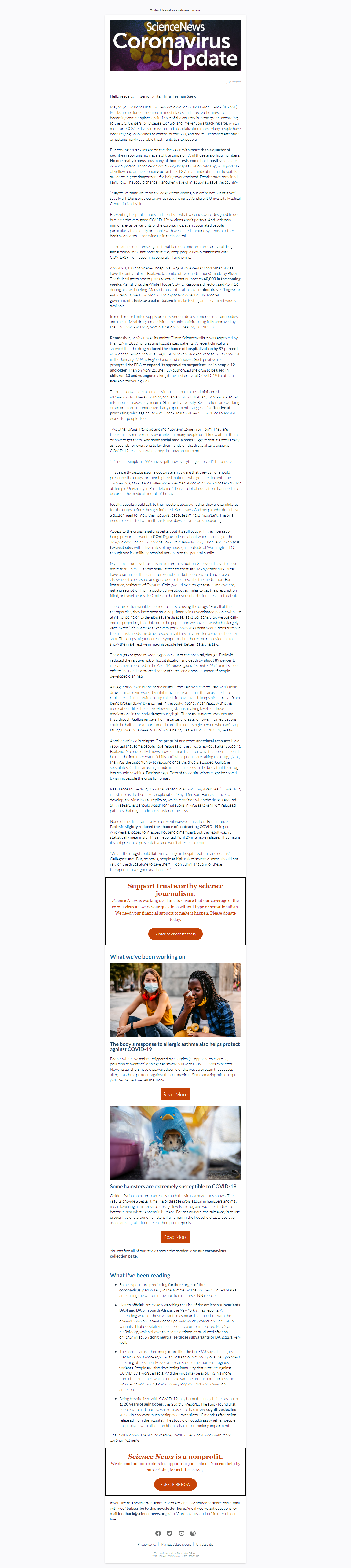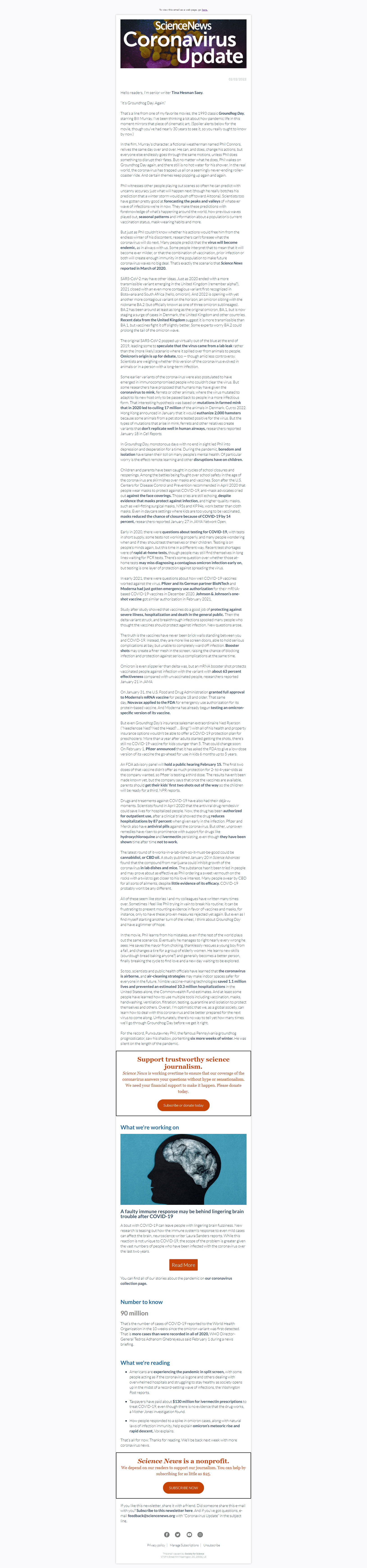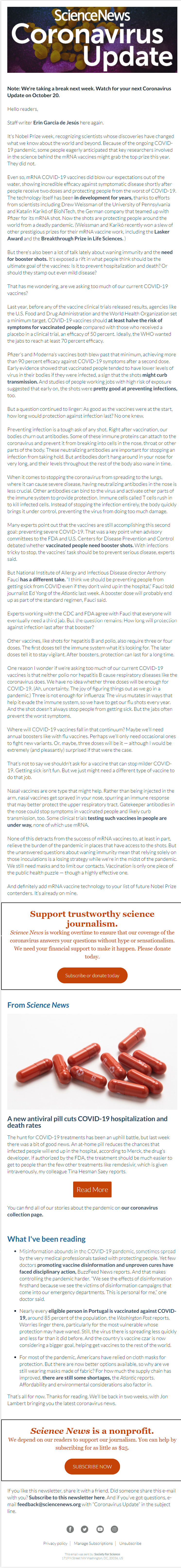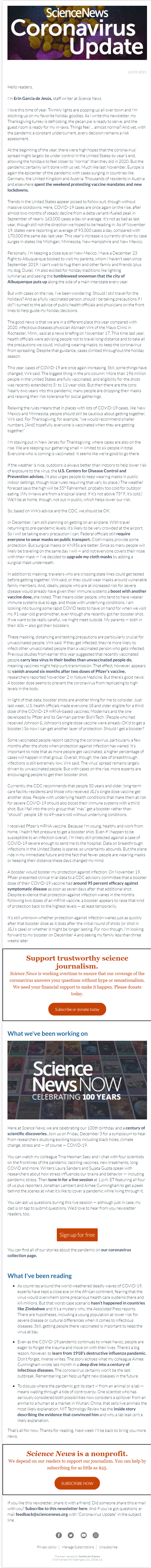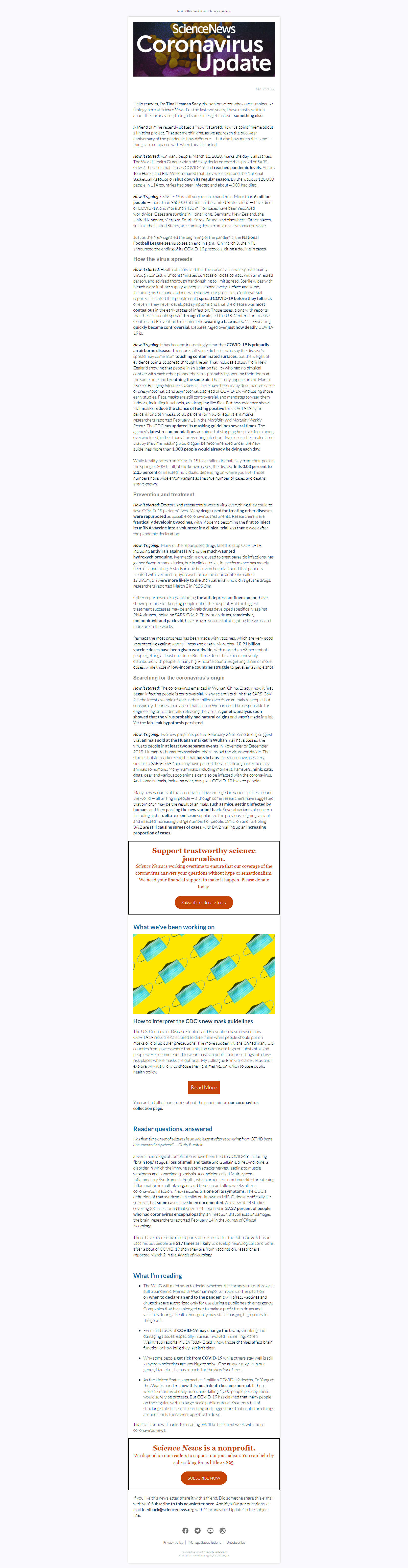 Below is a selection of past editions of Science News Coronavirus Update. Sign up to receive this newsletter here.