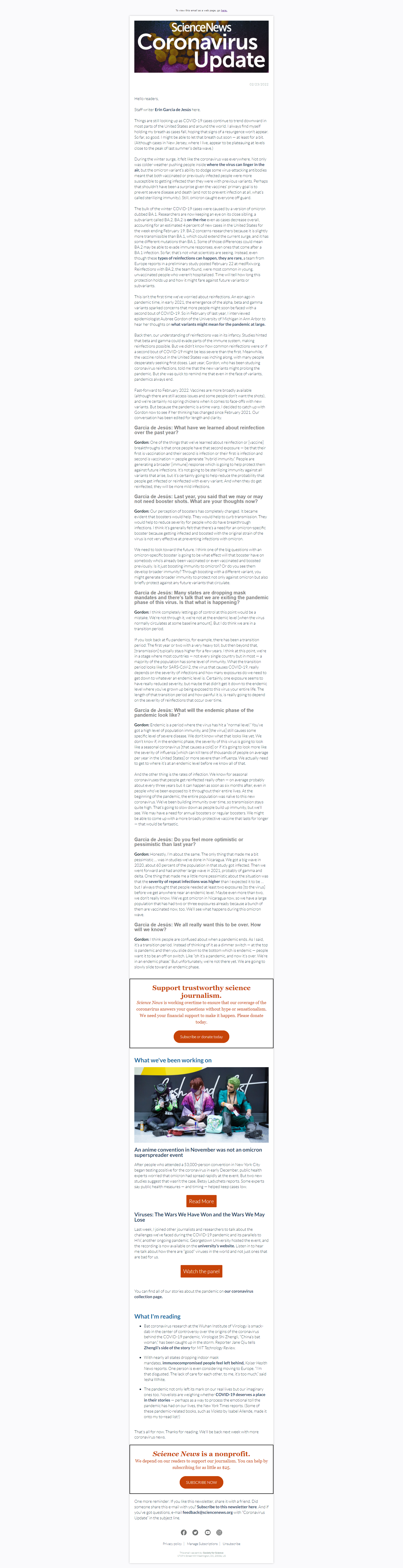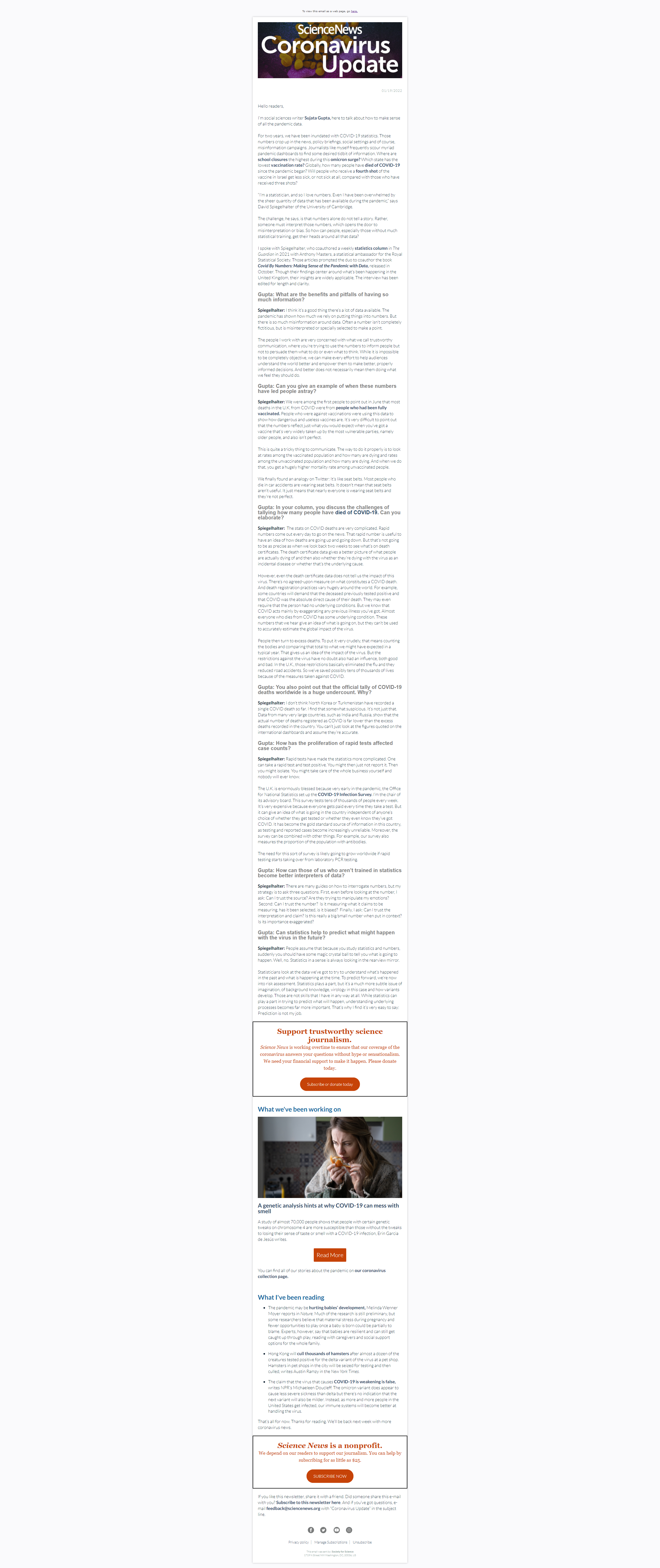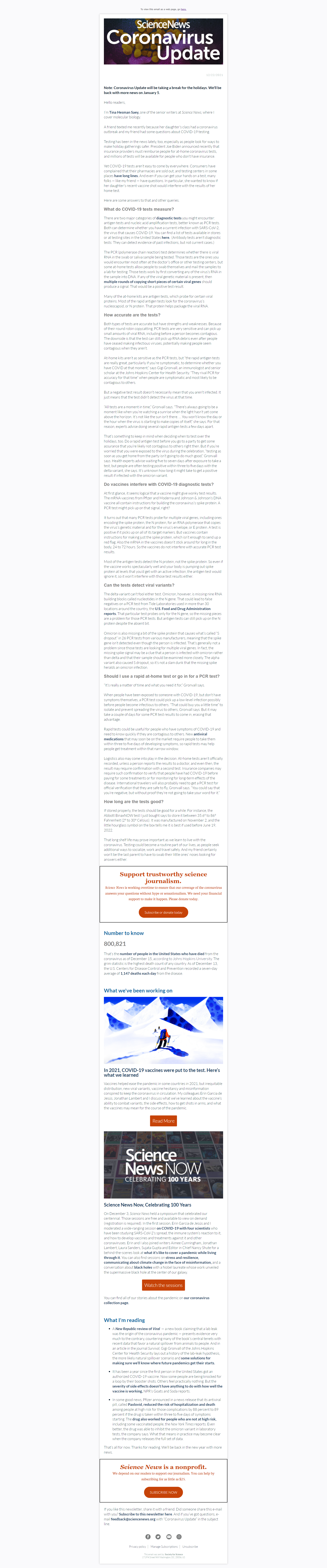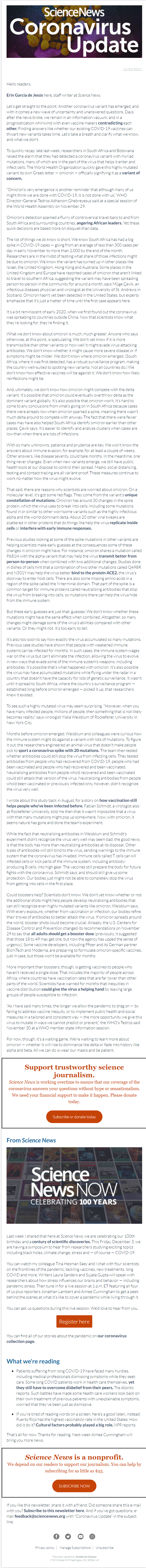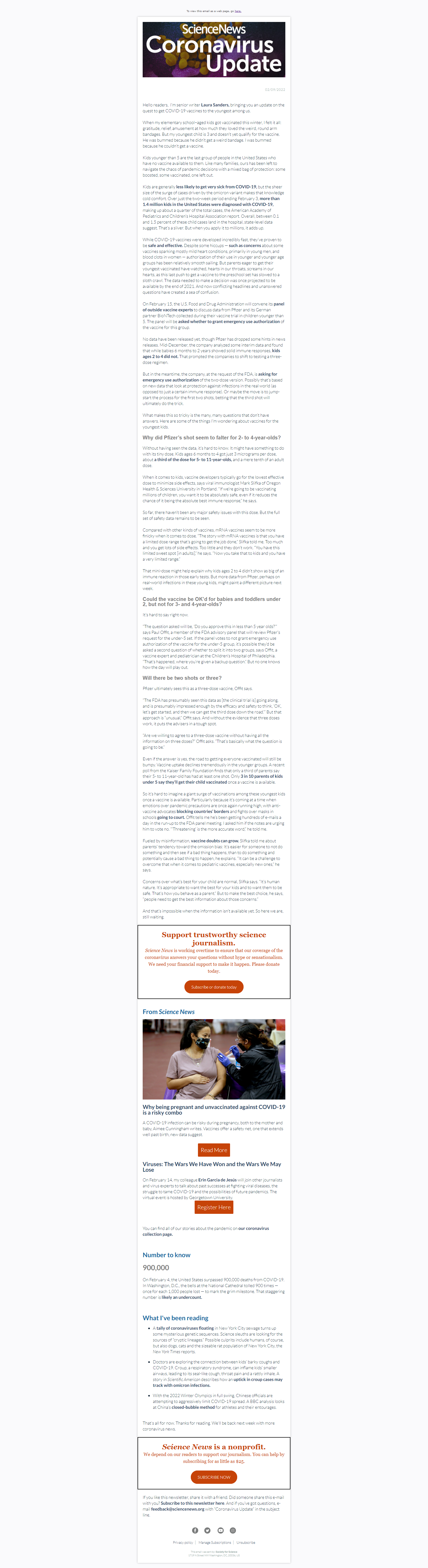 Below is a selection of past editions of Science News Coronavirus Update. Sign up to receive this newsletter here.