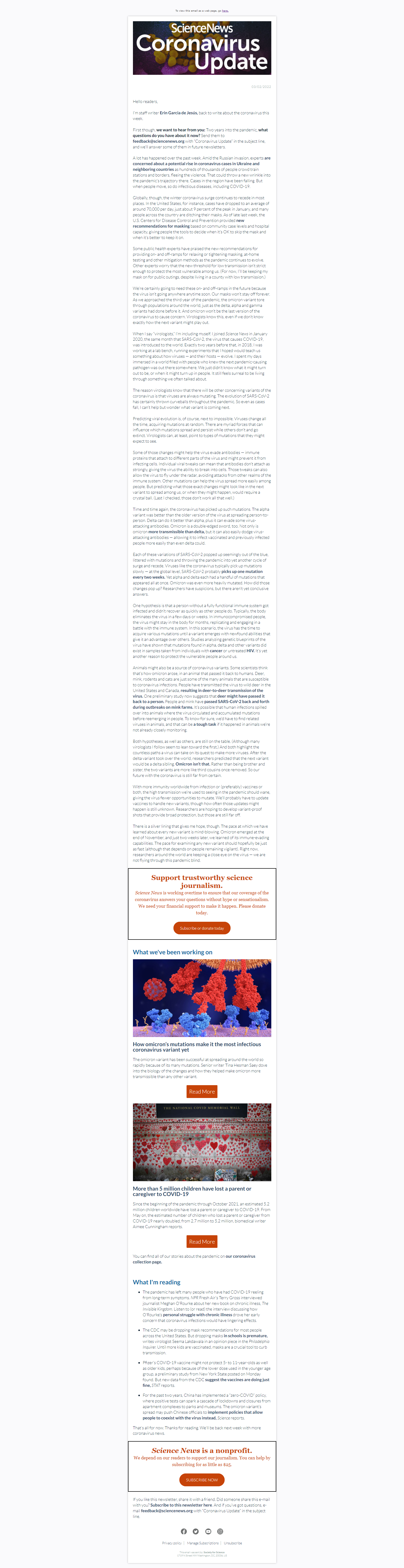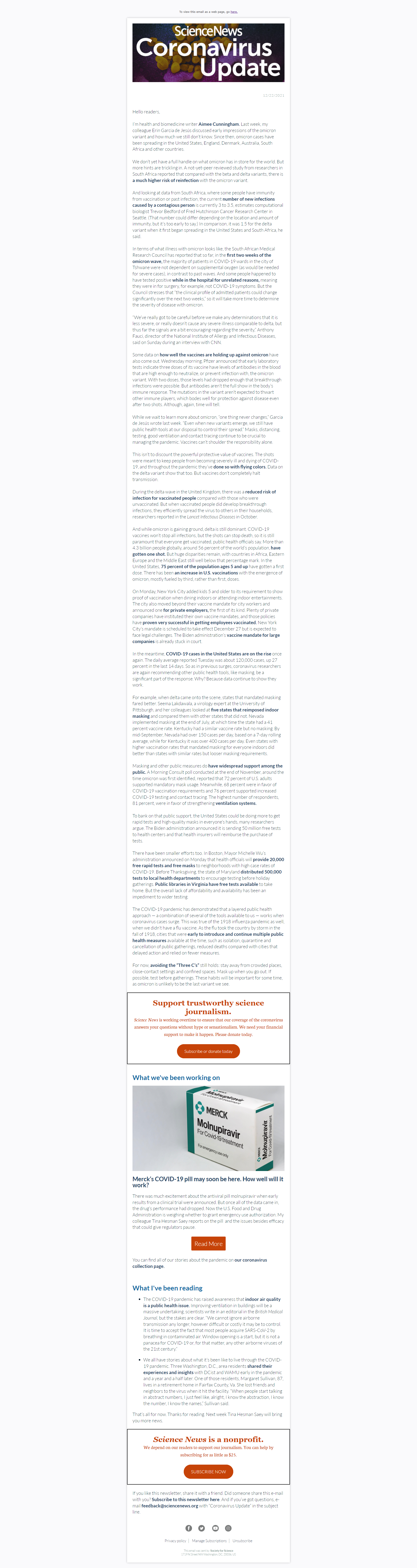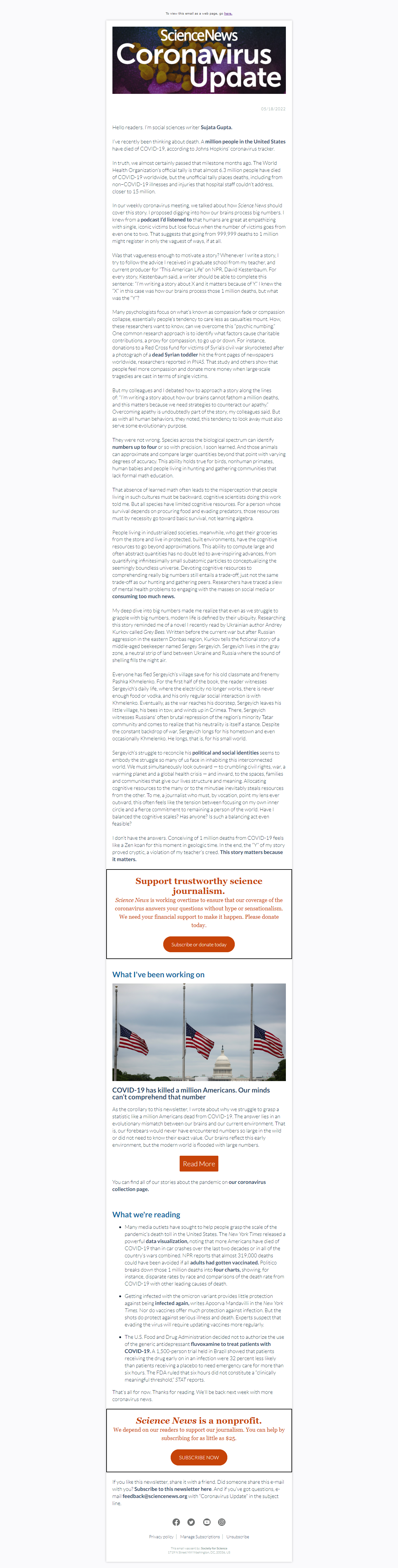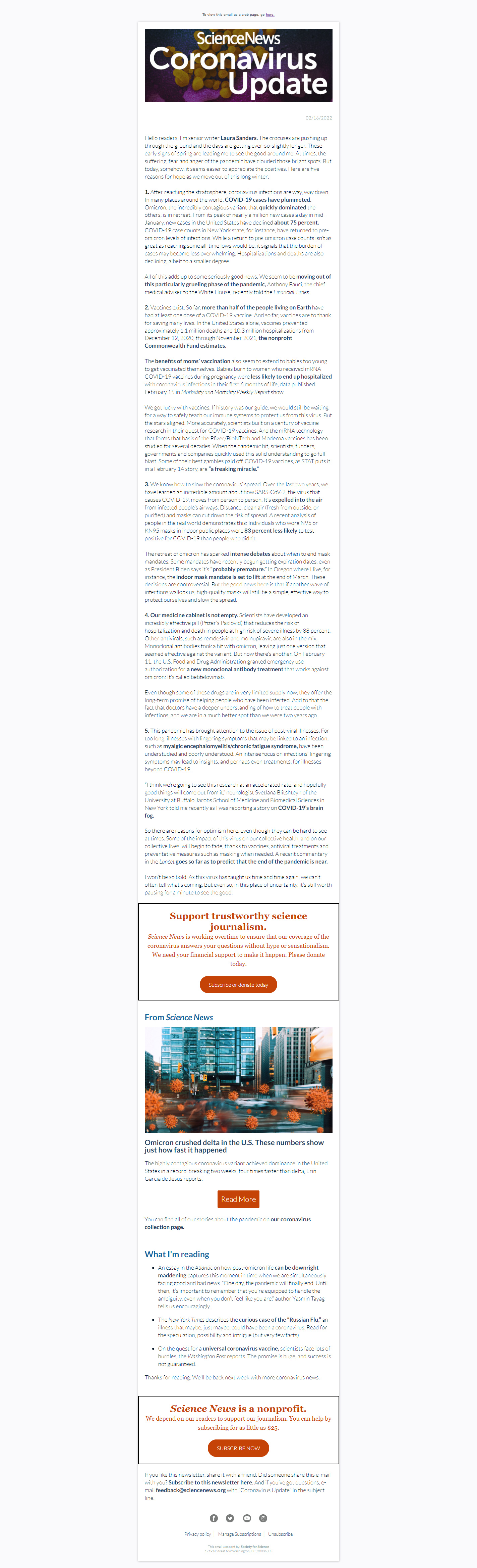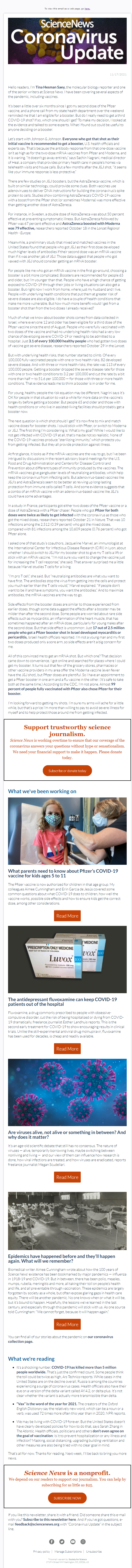 Below is a selection of past editions of Science News Coronavirus Update. Sign up to receive this newsletter here.