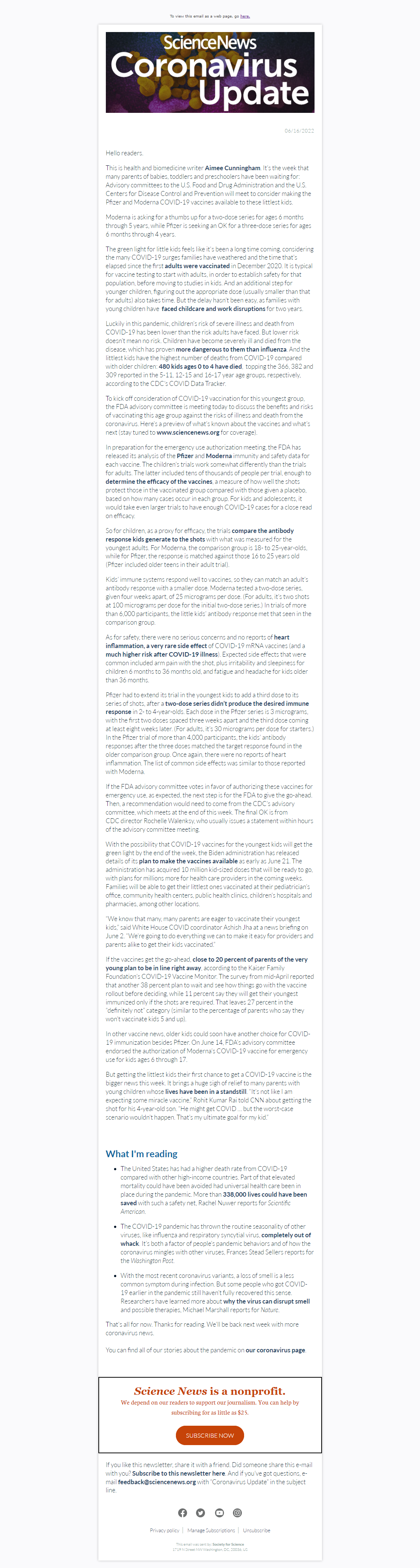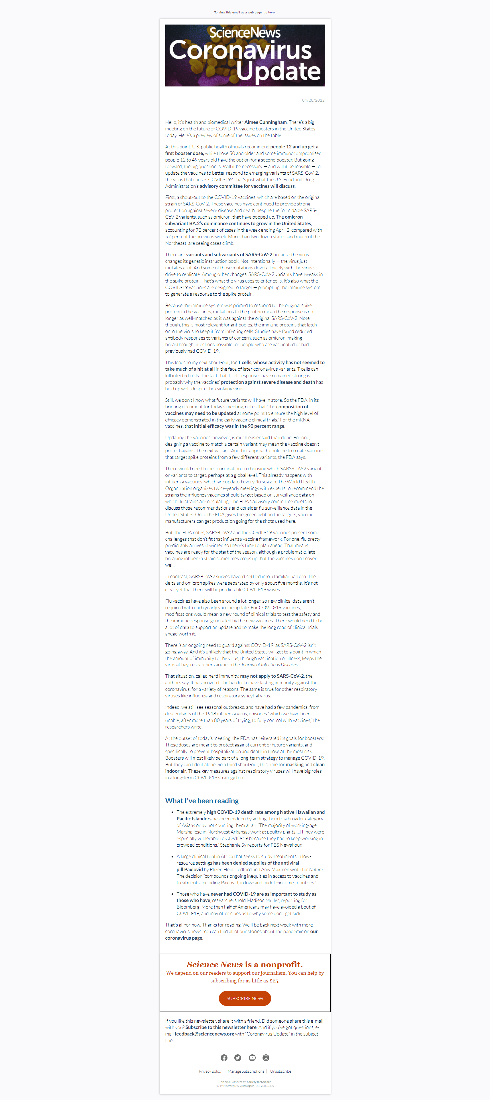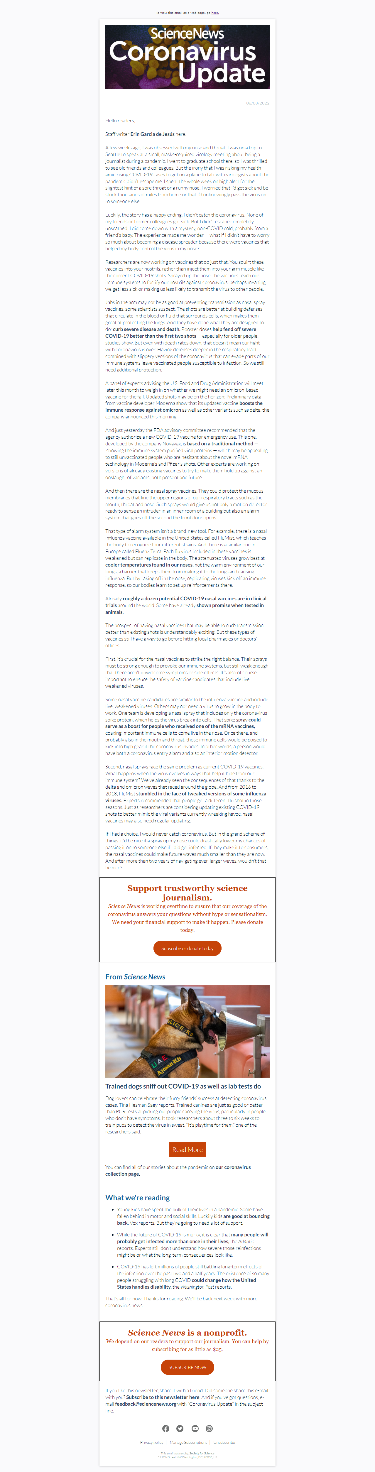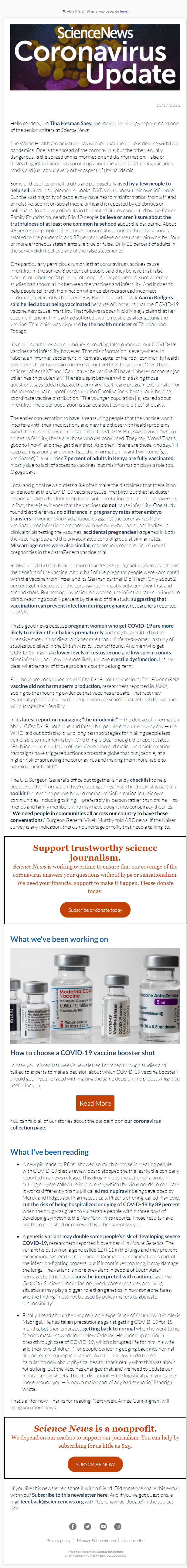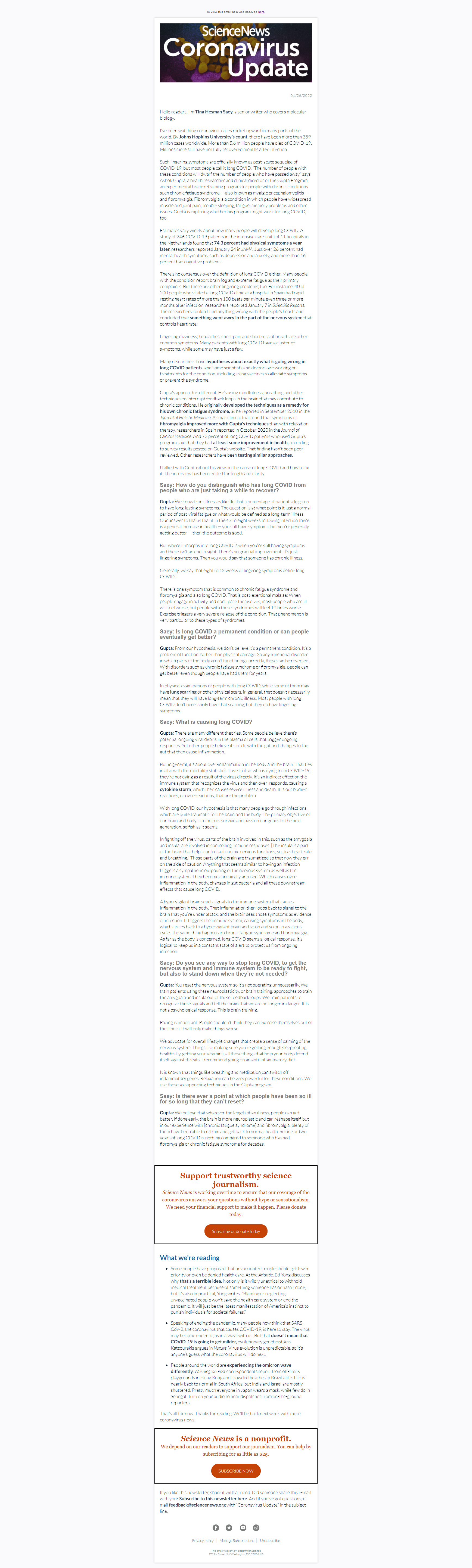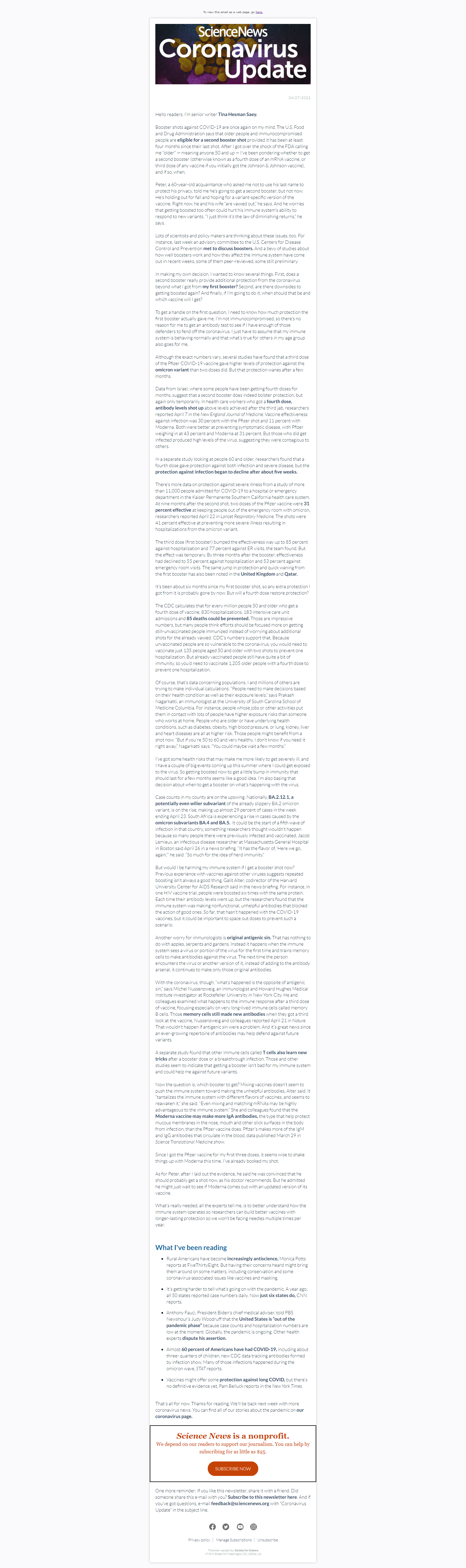 Below is a selection of past editions of Science News Coronavirus Update. Sign up to receive this newsletter here.