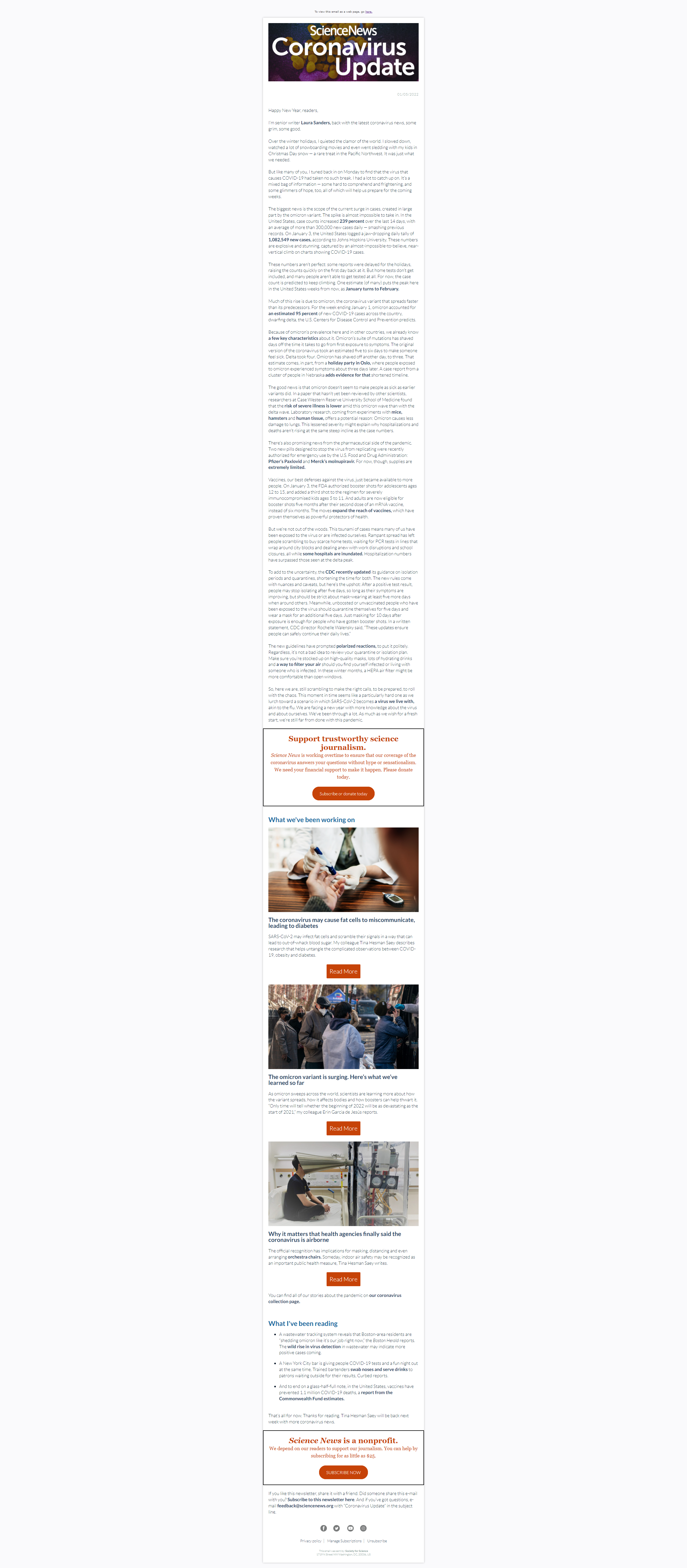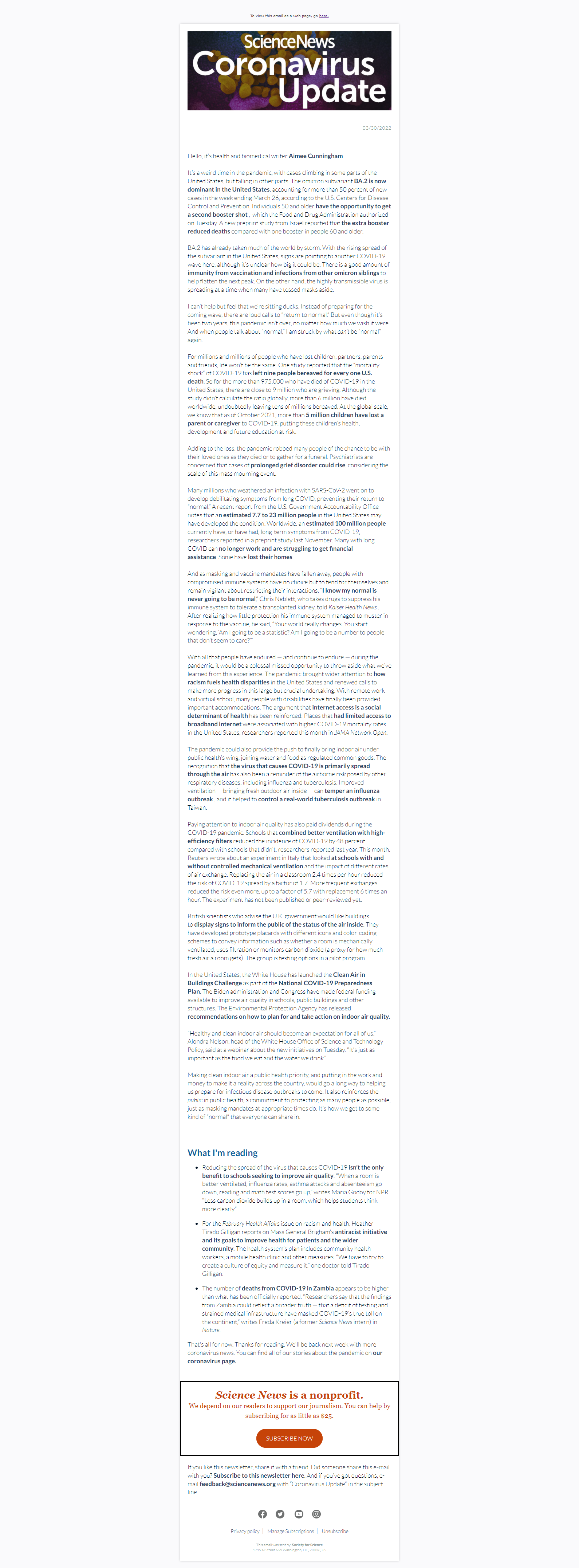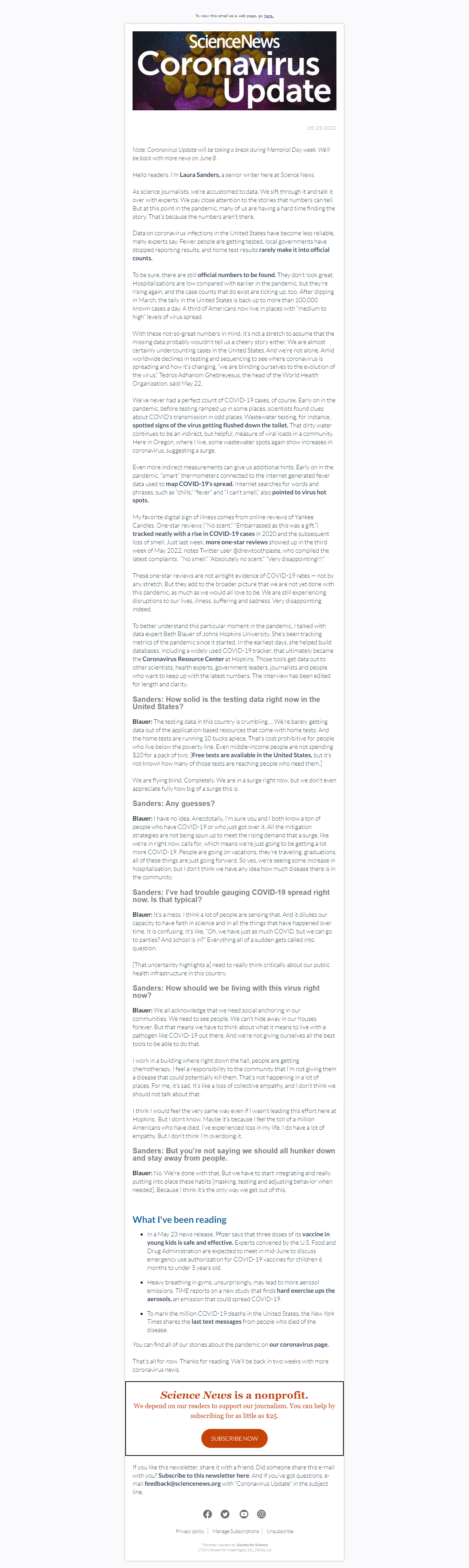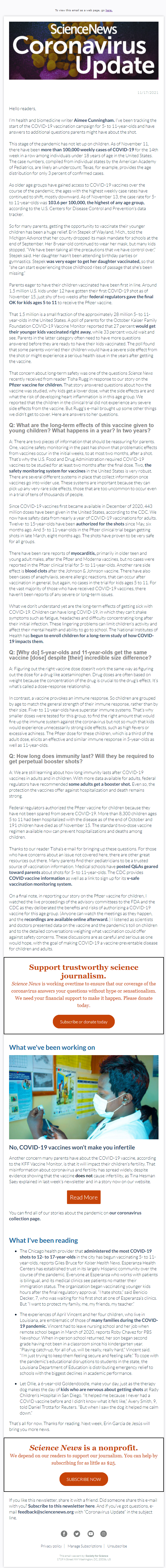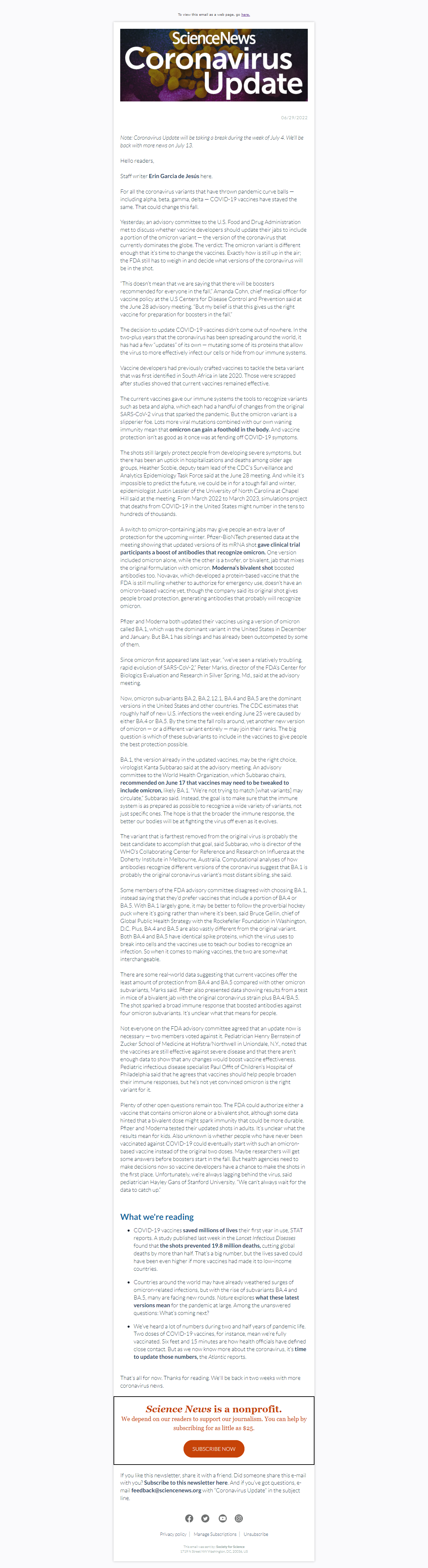 Below is a selection of past editions of Science News Coronavirus Update. Sign up to receive this newsletter here.