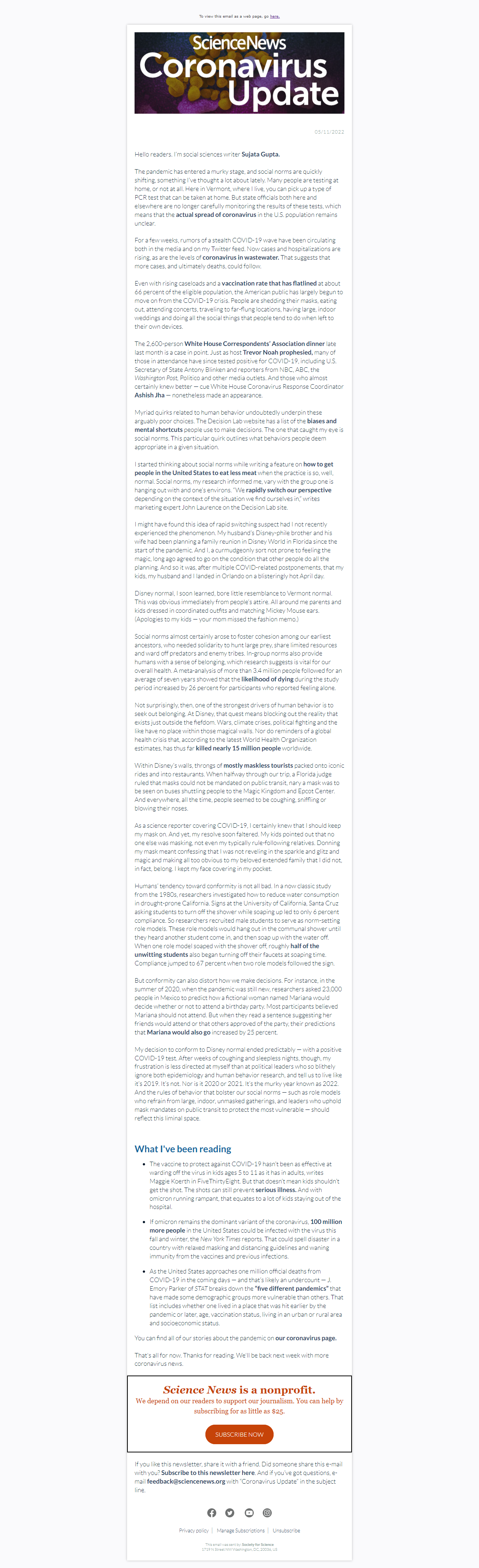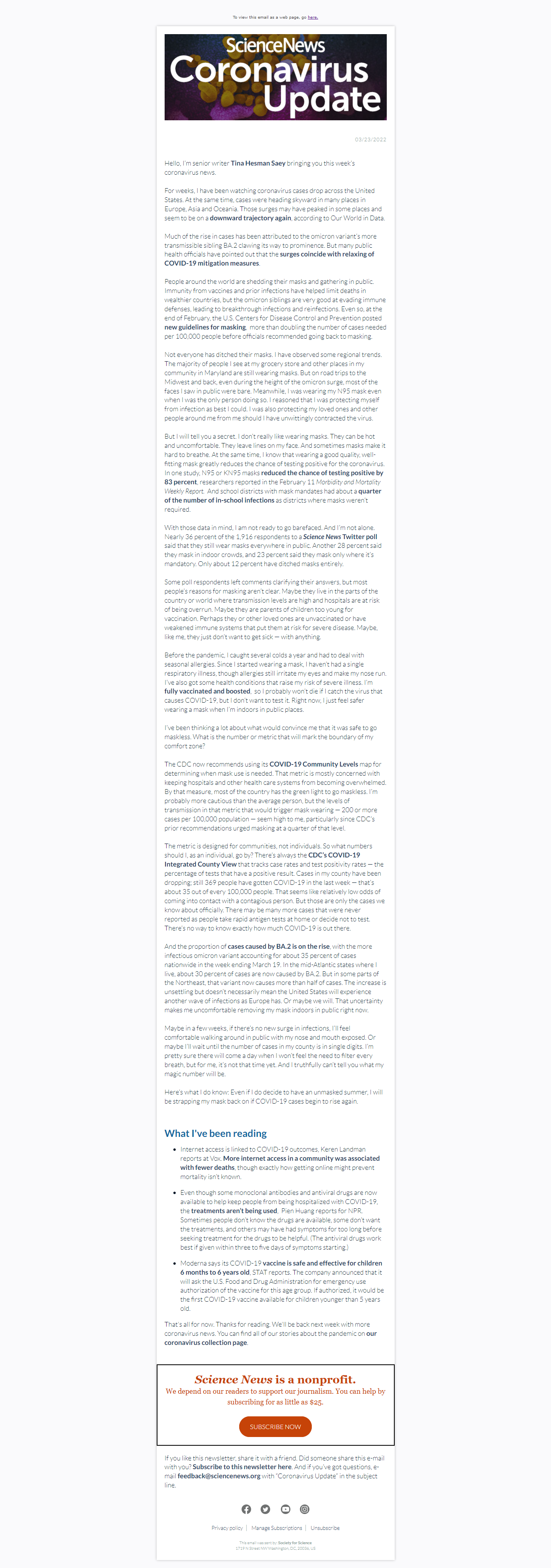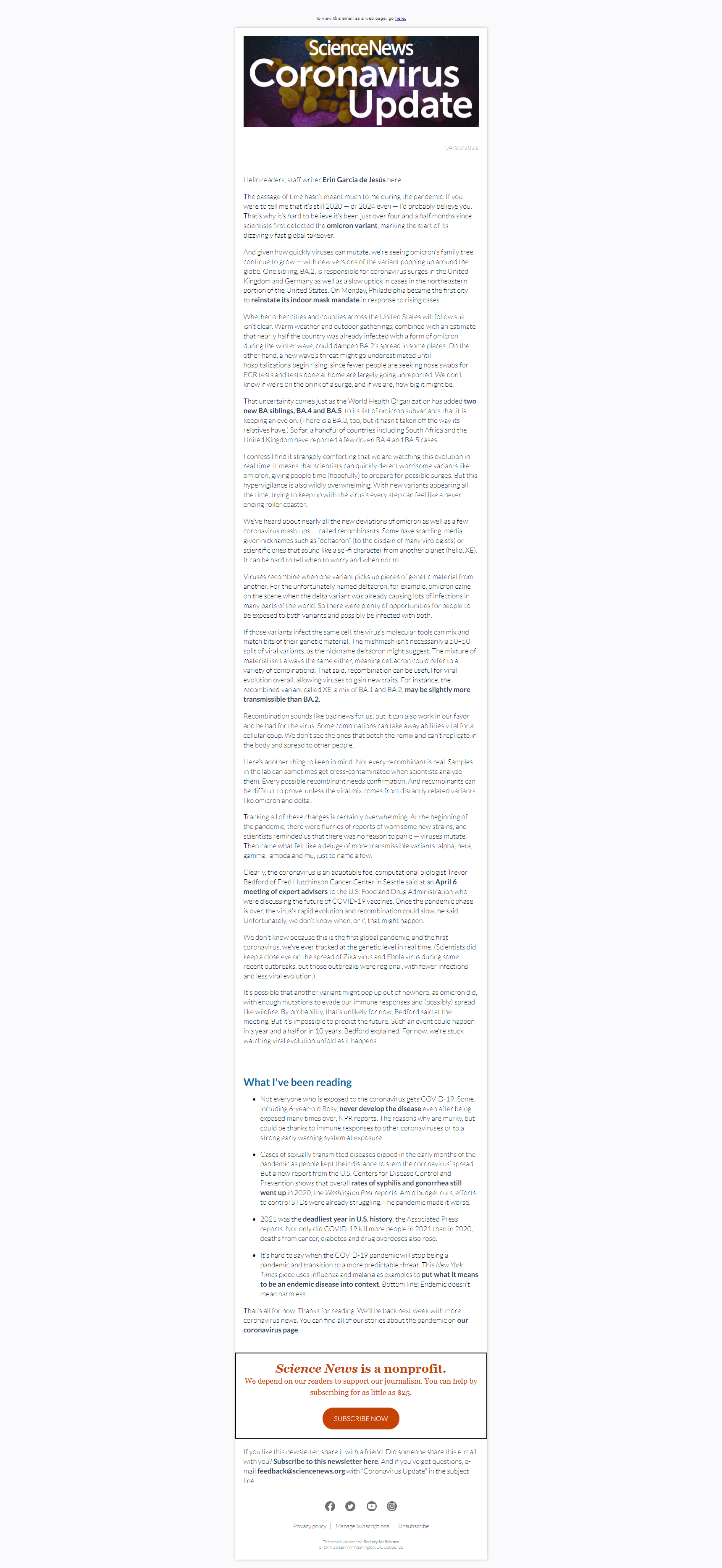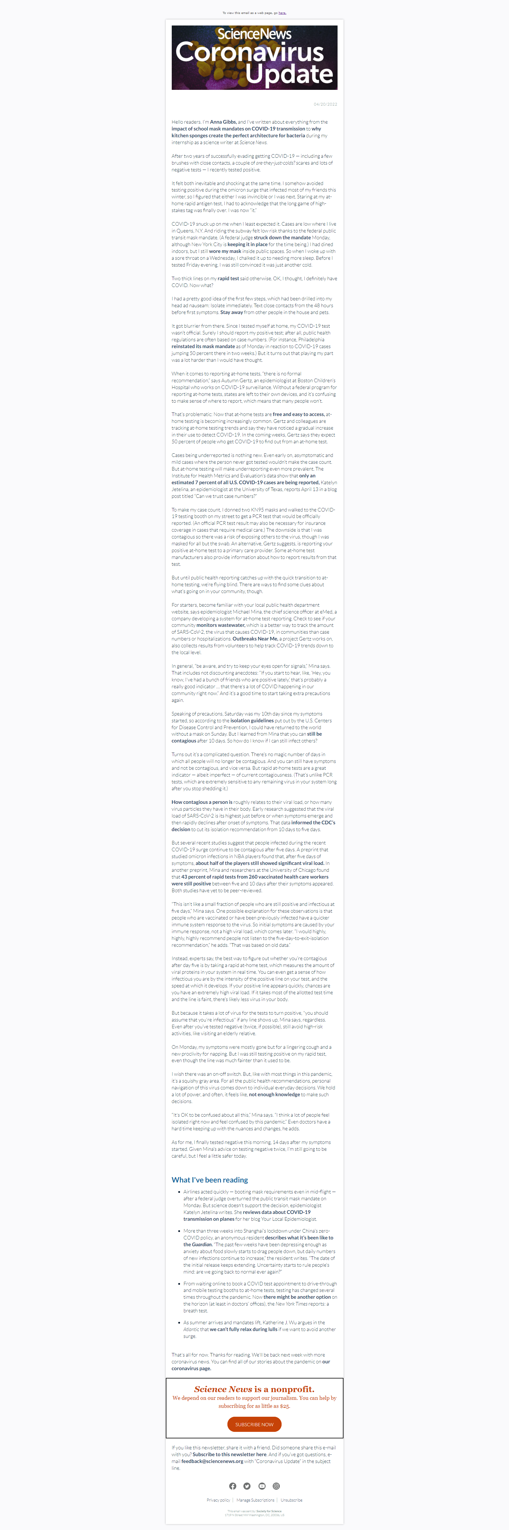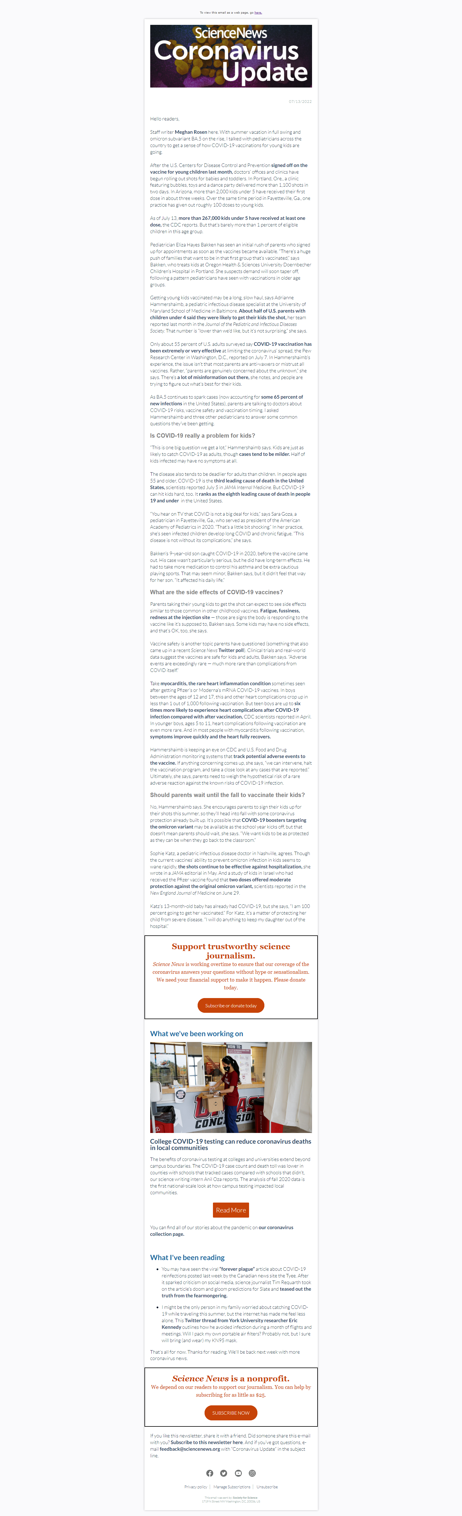 Below is a selection of past editions of Science News Coronavirus Update. Sign up to receive this newsletter here.