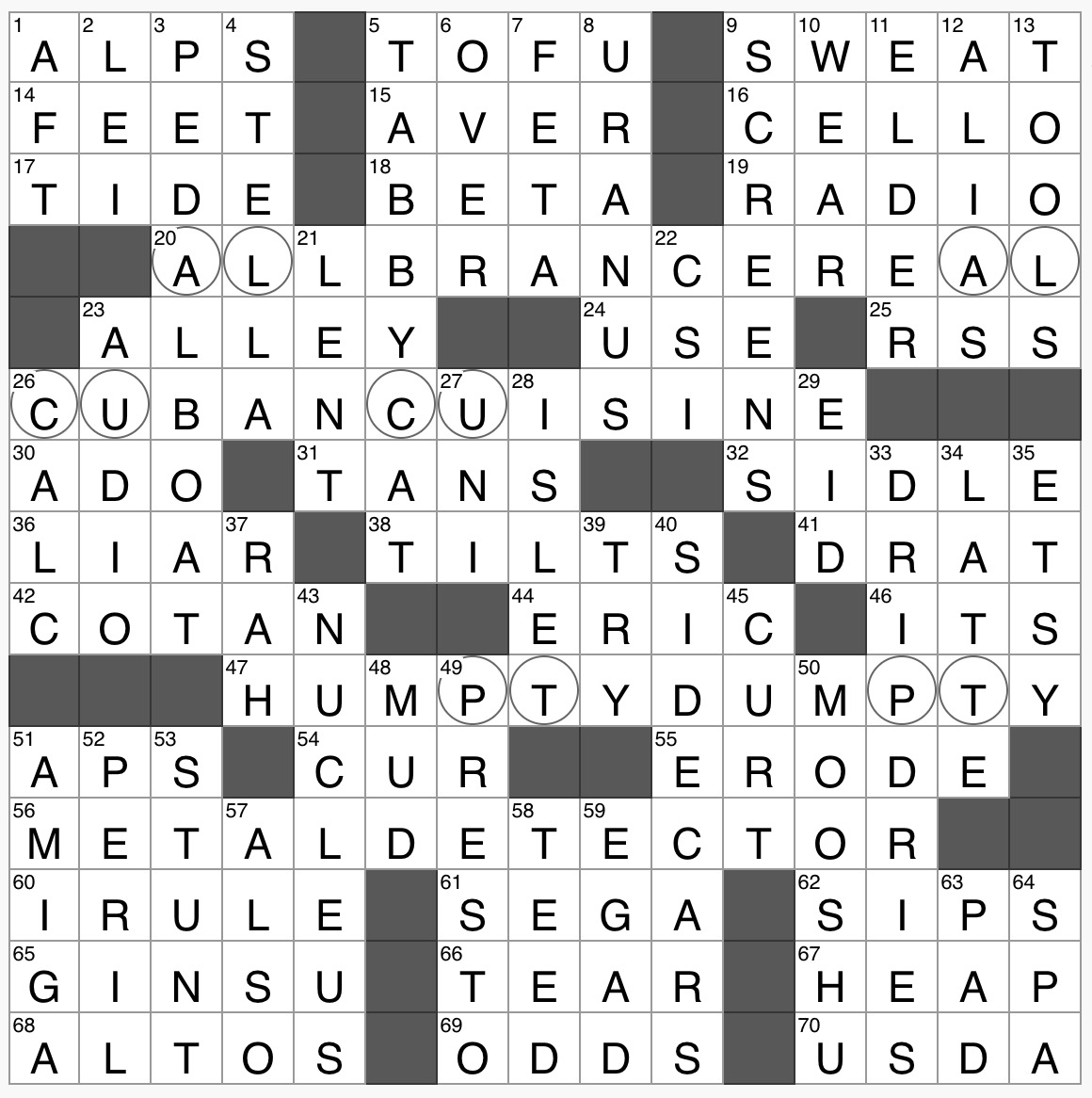 Crossword: Cold Cuts