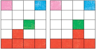 On the second island (top right, in the October math puzzle), there is only one way to extend the pink and green queendoms without surrounding the already-identified plots of the blue and red queendoms.