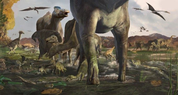 Young and old duck-billed dinosaurs lived together in herds in the Arctic, tracks preserved in Alaska indicate.