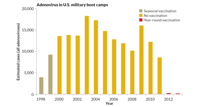 Adenoviruses, which cause respiratory illnesses including some colds, plague boot camps.