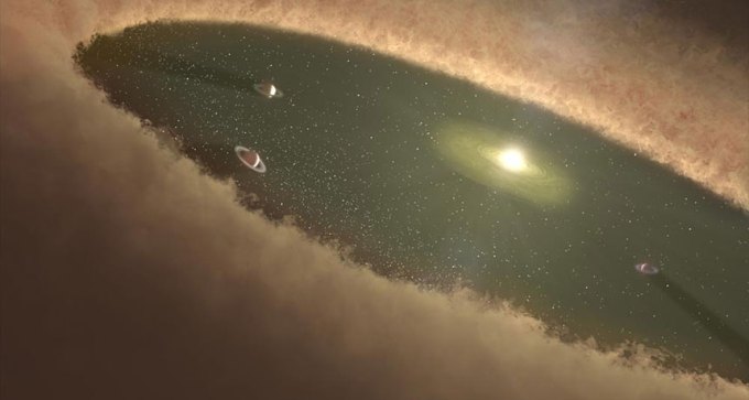 A baby planet is still growing in the disk of gas that encircles a young star.