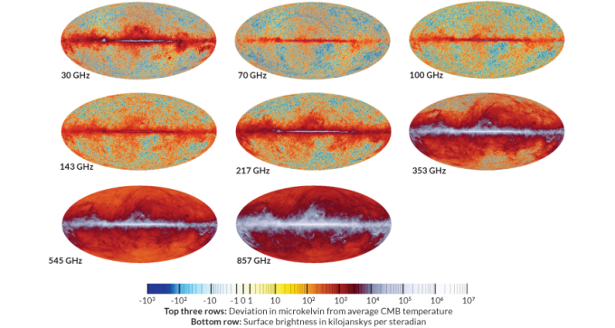 Maps from the European Space Agency’s Planck satellite reveal the cosmos in a range of microwave and infrared frequencies.