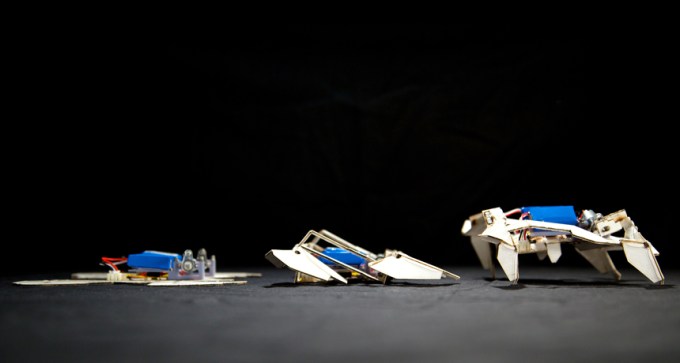 The machines use heated hinges to transform into shape and crawl around.