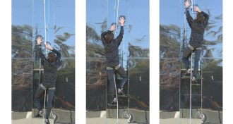 Springs of a stretchy alloy let gecko-inspired adhesives work at human scales to climb glass walls or grab space junk.