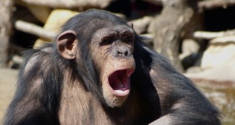 Juvenile chimps yawn contagiously when they see humans do it, a response that could signal the animals are developing empathy.
