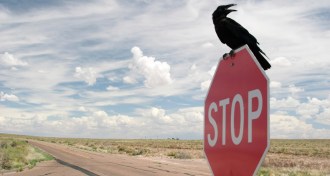 Crows, house sparrows and other species judge when to flee the asphalt by average traffic rates rather than an oncoming car's speed.