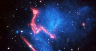 New images reveal a jet of particles shooting out of a collision among four galaxy clusters.