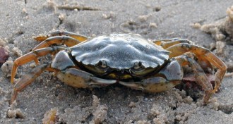 Crabs can absorb microplastic particles through their gills and by eating polluted mussels.