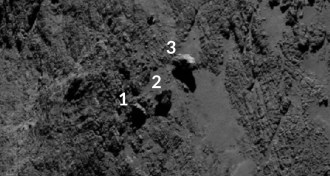 Three boulders on comet 67P resemble balancing rocks that are seen on Earth.