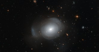A cosmic crash of two huge masses of stars, gas and dust probably gave way to a new galactic structure with both young and old star clusters.